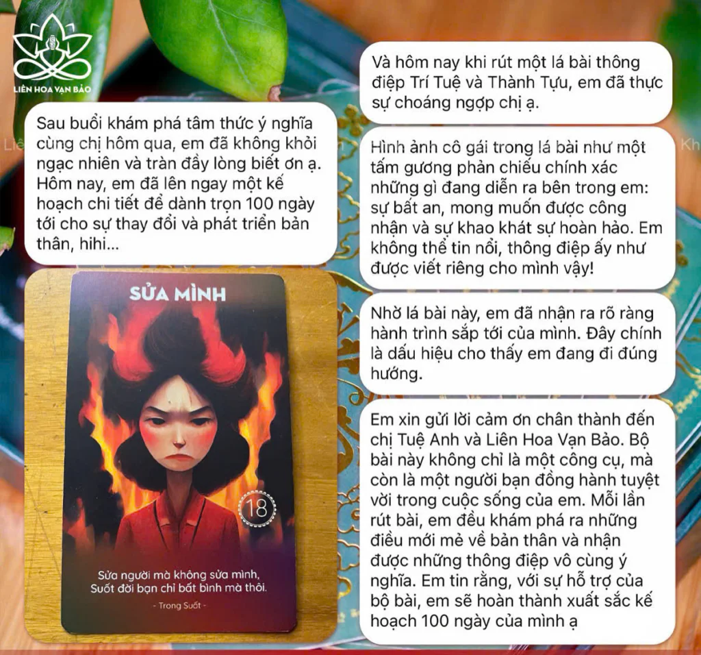 Khi bạn đến với Liên Hoa Vạn Bảo, bạn không chỉ nhận được những vật phẩm tâm linh hay khoá học tỉnh thức, các khoá học nâng cao rung động, tăng trưởng trí tuệ mà còn là một cơ hội để bắt đầu hành trình chuyển hóa của chính mình.