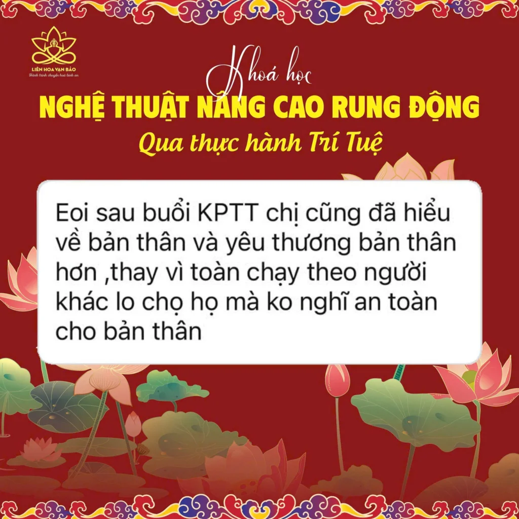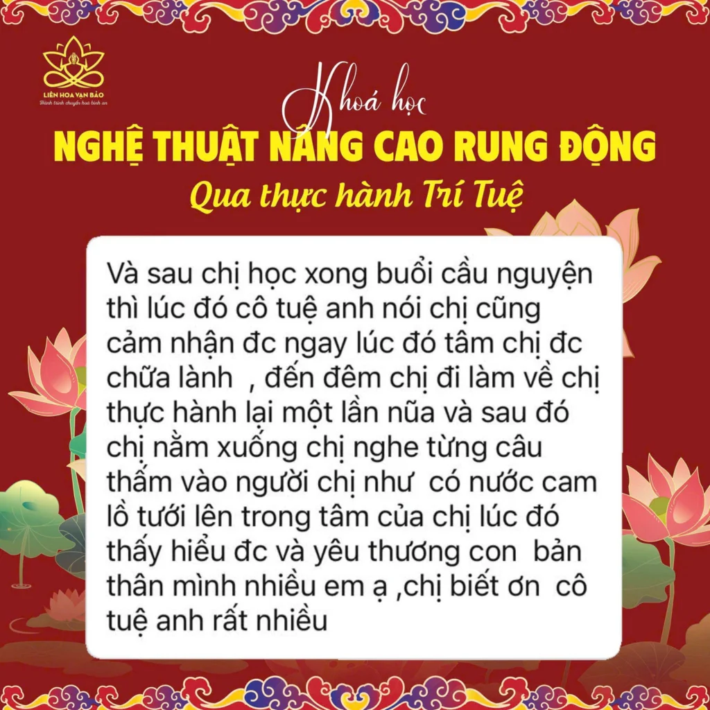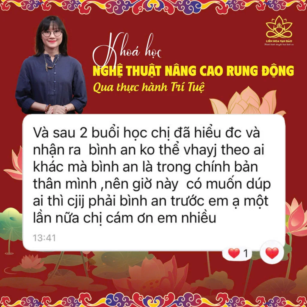 - Kiến thức sâu rộng: Với nền tảng vững chắc từ việc học hỏi và thực hành trong các trường phái tâm linh và Phật pháp, chuyên gia Tuệ Vân giúp học viên nhận ra rằng bình an không phải đến từ việc thay đổi hoàn cảnh bên ngoài, mà là trạng thái sẵn có bên trong mỗi người, để nhận ra điều bạn cần làm không phải là đi tìm kiếm, mà là có cách nhận diện và khơi nguồn bình an.