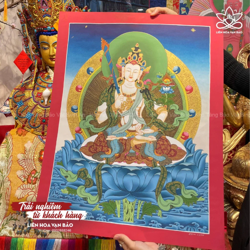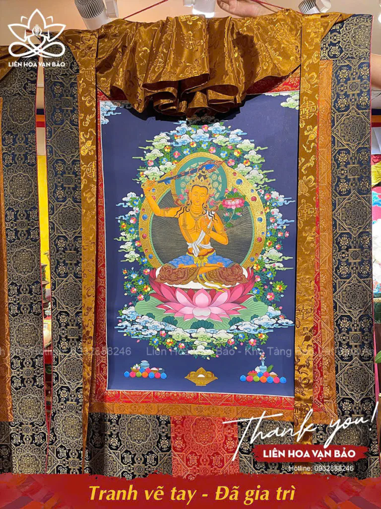 Thangka vẽ tay Đức Văn Thù Sư Lợi từ các vị Lama Nepal tại Liên Hoa Vạn Bảo