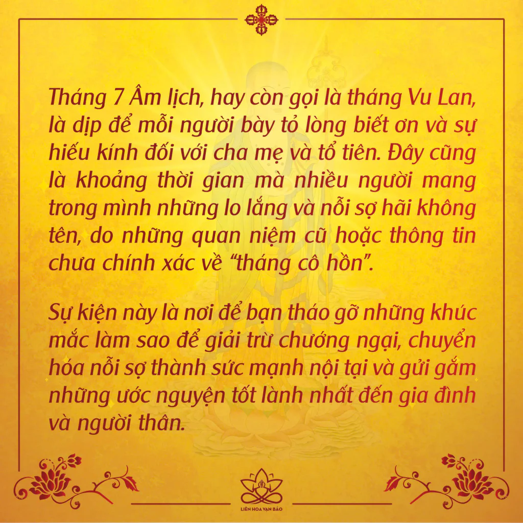 Xuất phát từ những ý nghĩa ấy, Liên Hoa Vạn Bảo tổ chức sự kiện “Đại Lễ Vu Lan – Dâng lời nguyện cầu BÌNH AN CHO NGƯỜI THÂN Tới Đức Địa Tạng Bồ Tát.”