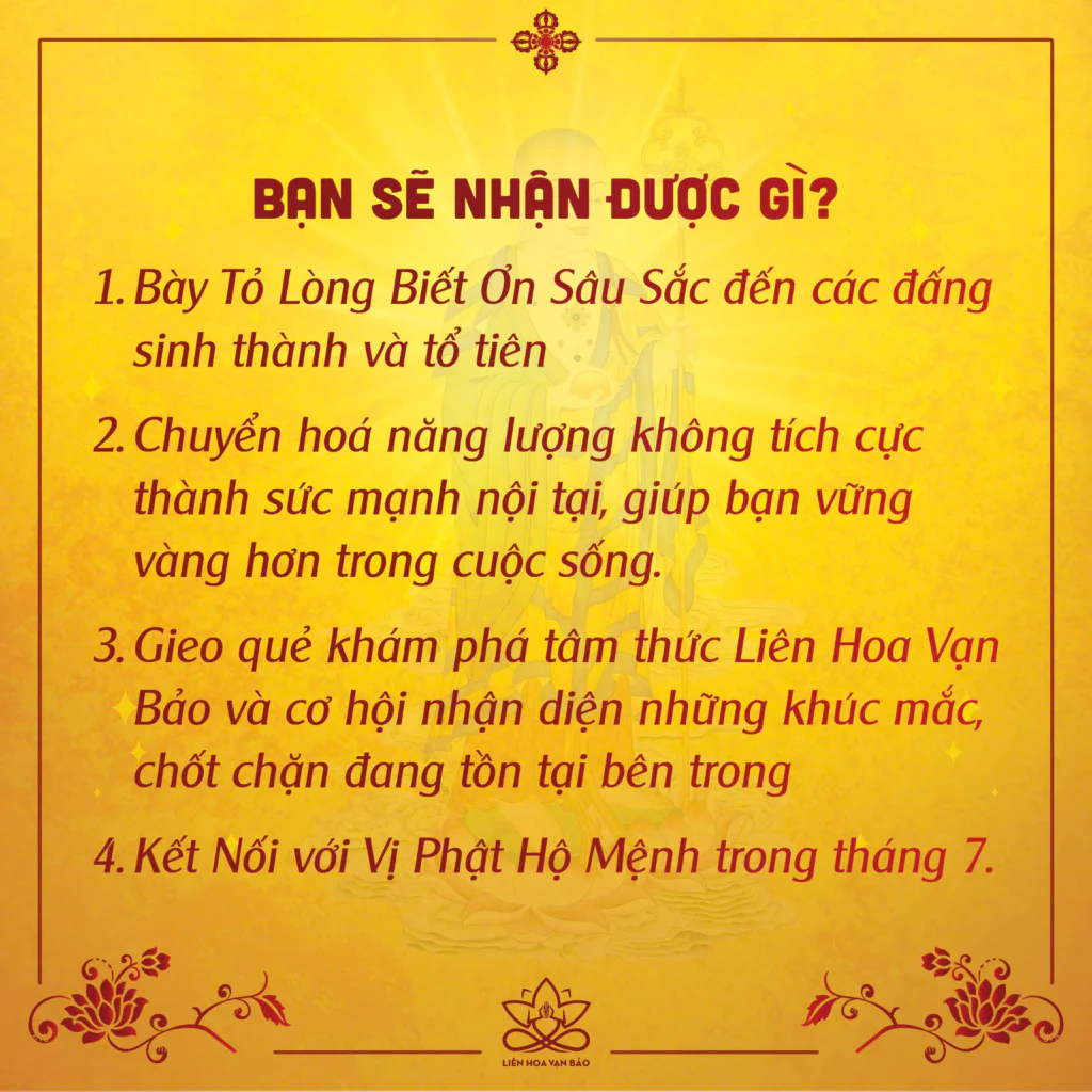– Kết nối bạn với vị Hộ Phật bảo hộ trong tháng 7.