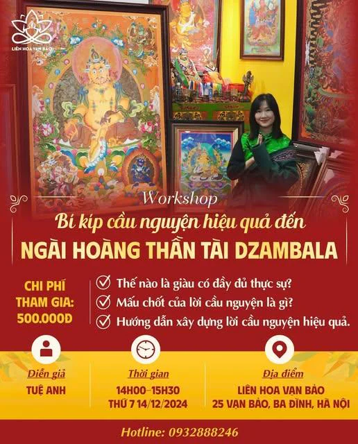 Rất nhiều quý bạn đã đề xuất với Liên Hoa Vạn Bảo về chủ đề Cầu nguyện đến Ngài Dzambala như thế nào cho đúng, vì thế hôm nay Liên Hoa Vạn Bảo quyết định tổ chức buổi Workshop này xoay quanh vài chủ đề chính như sau:
